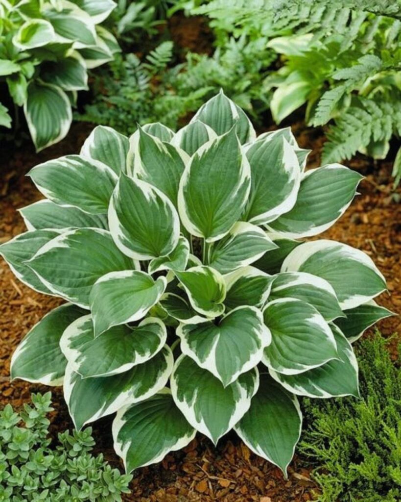 • Plants de hostas (choisissez vos variétés selon vos envies : ‘Sum and Substance’ pour son gigantisme doré, ‘Blue Angel’ pour sa majesté bleue, ou ‘Francee’ pour son élégance panachée)