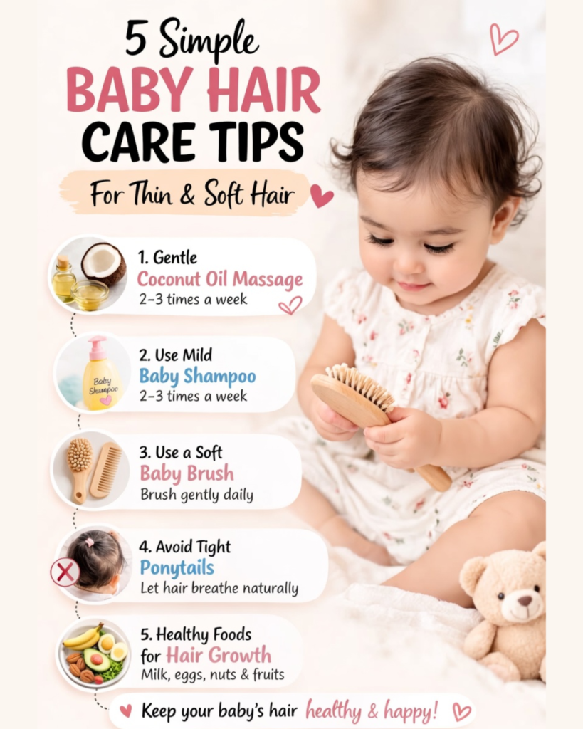 Thin baby hair is temporary and perfectly normal, but consistent, loving care can make a big difference in how healthy and beautiful it looks as your little one grows. These five simple baby hair care tips for thin hair—gentle washing, natural moisturizing, finger detangling, overnight protection, and scalp support—protect delicate strands, reduce breakage, and encourage stronger growth without any harsh chemicals. Start with just one or two tips this week and watch how your baby’s hair becomes softer, shinier, and more manageable. Patience and gentleness are the real secrets—your baby’s hair will thicken naturally over time with the right care. Save this guide, share it with other parents, and enjoy every sweet moment of your baby’s hair journey. You’re doing a wonderful job.