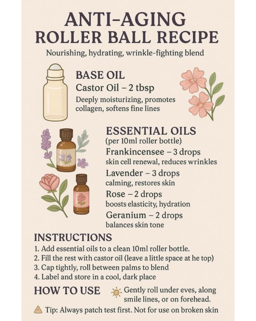 Create your own anti-aging roller ball recipe to smooth fine lines and restore your glow. Learn how to blend essential oils for youthful, radiant skin naturally today.