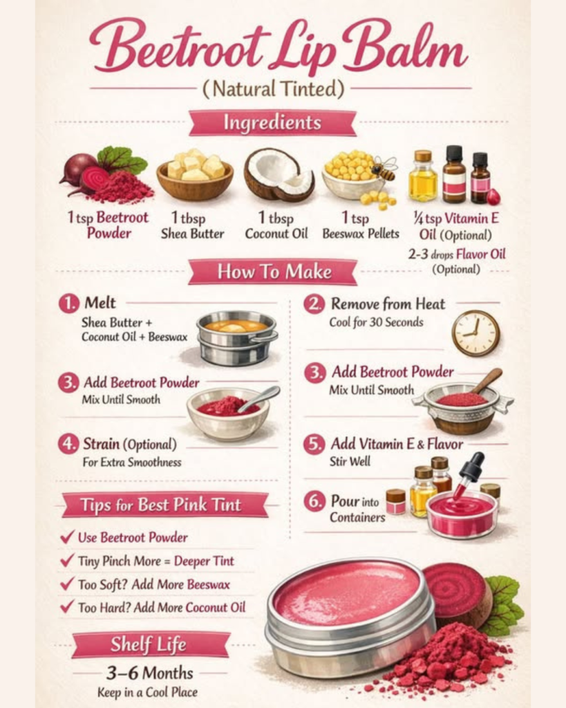 • The Powder Method: Using store-bought beetroot powder is faster and extends the shelf life of your balm. This is a great [time-saving DIY tip] for busy creators.