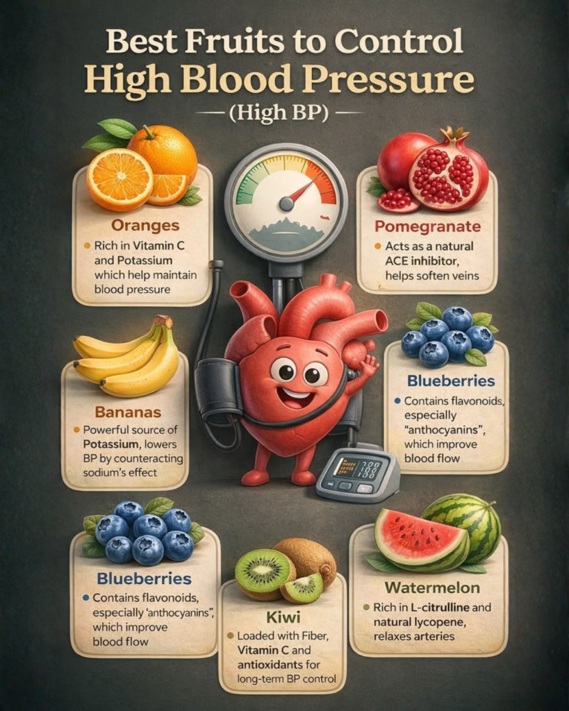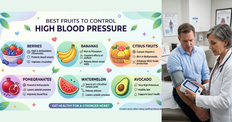 Incorporating potassium- and antioxidant-rich fruits like bananas, berries, citrus, and pomegranate into your diet can naturally help control high blood pressure. Consistent intake, along with a balanced diet and lifestyle, supports heart health and overall well-being. Start adding these fruits to your daily routine for a tasty and health-boosting approach to managing blood pressure.