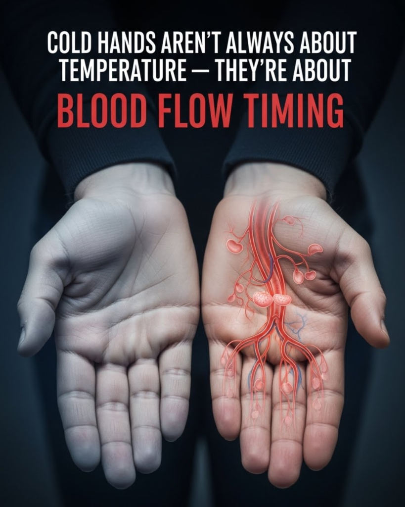 Have you ever sat in a perfectly warm room, wrapped in a blanket, yet felt like your fingers were made of ice? It is a frustrating experience that leads many to believe they are simply “cold-blooded” or that the thermostat is broken. However, the truth is much more fascinating: cold hands aren’t always about temperature—they’re about blood flow timing. Your body is a master of prioritization, and sometimes, its internal schedule for distributing warmth doesn’t align with your comfort.