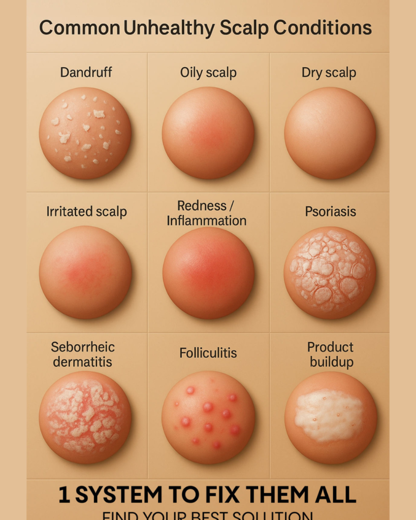 Common Unhealthy Scalp Conditions 1 SYSTEM TO FIX THEM ALL: Discover how to resolve dandruff, itchiness, and thinning with a simple, evidence-based routine.
