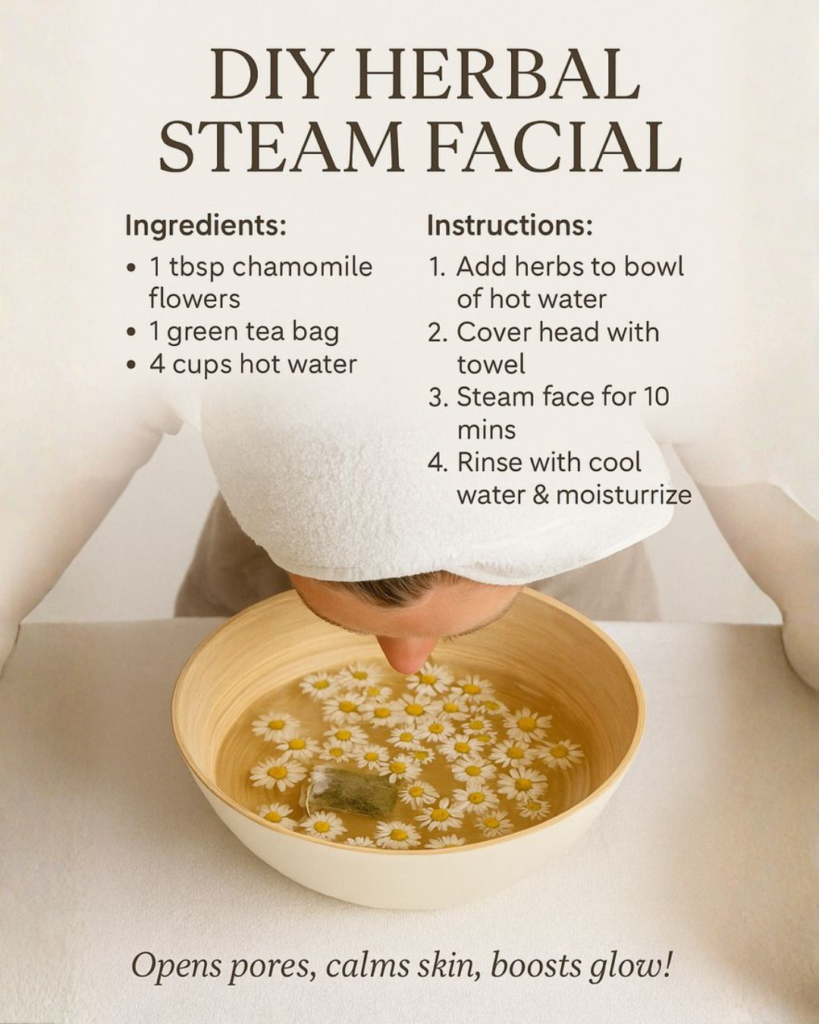 Detox your skin naturally with a chamomile and green tea steam facial. Discover how to unclog pores, boost circulation, and glow from home with this guide.
