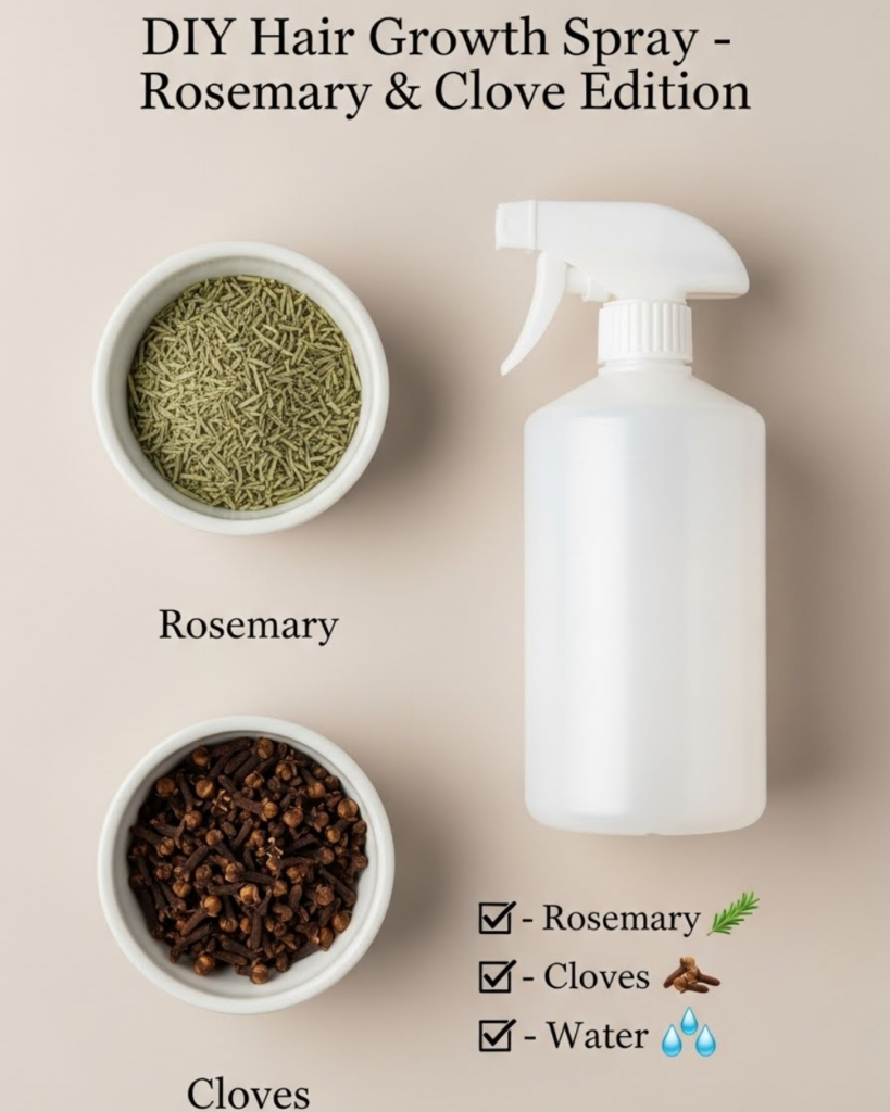 Learn how to make a DIY Rosemary & Clove Hair Spray to support hair growth and scalp health. This natural, easy-to-make spray is a game-changer for your routine.