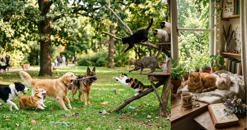 Practical takeaway: Dogs love scent games and sniffing walks. Cats love vertical space, moving toys, and quiet environments.