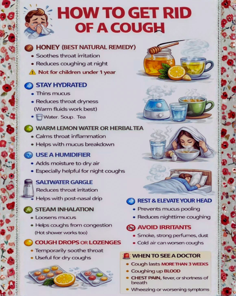 A persistent cough — whether dry and irritating or productive with mucus — disrupts sleep, strains throat and chest muscles, and interferes with daily activities through its relentless nature. Coughs result from the body’s protective reflex clearing airways of irritants, mucus, or pathogens, operating through a complex neurological pathway involving sensory receptors in airways, the medullary cough center in the brainstem, and the coordinated contraction of respiratory muscles. While coughs serve essential protective functions, excessive or prolonged coughing becomes counterproductive, causing tissue irritation that triggers further coughing in a self-perpetuating cycle. Getting rid of a cough requires addressing both the underlying cause (viral infection, postnasal drip, irritant exposure, or chronic conditions) and the symptom itself through remedies that soothe irritated airways, thin mucus for easier clearance, suppress the cough reflex when appropriate, and support the immune system’s resolution of infections. This guide provides evidence-based approaches ranging from immediate home remedies to when medical intervention becomes necessary.