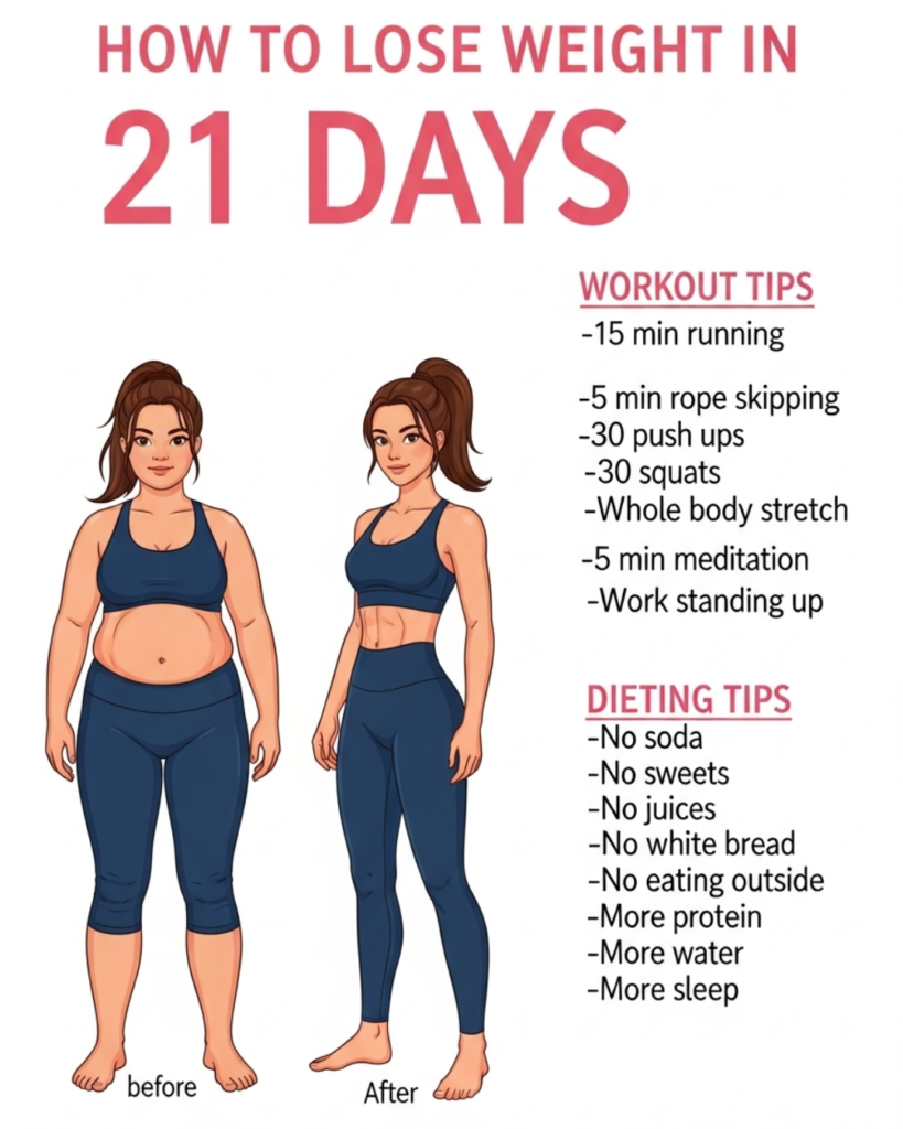 To lose weight quickly and safely in 21 days, focus on a high-protein, low-carbohydrate diet that eliminates processed sugars and alcohol. Combine this with Intermittent Fasting (16:8) and daily movement, such as 30 minutes of brisk walking and three weekly HIIT sessions. Staying hydrated with at least 3 liters of water daily and ensuring 7–9 hours of sleep are critical for hormonal balance and fat oxidation.