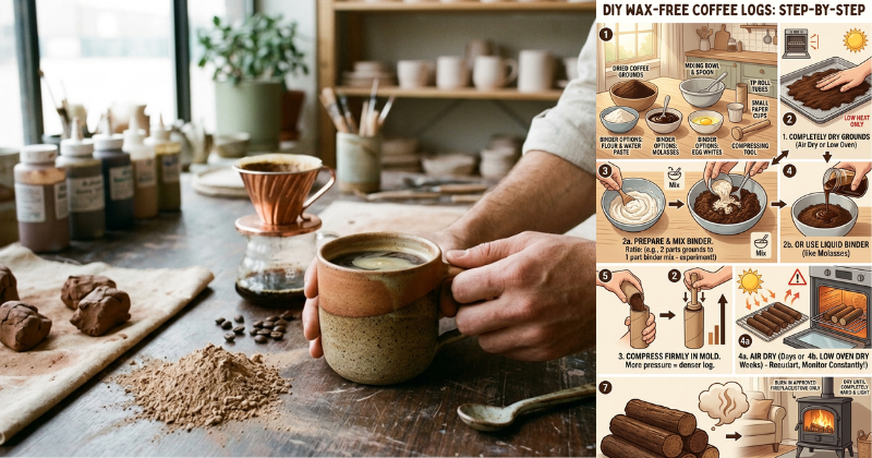 Learn how to make coffee logs without wax using simple, natural binders. Transform your old coffee grounds into eco-friendly fuel for your fireplace today!