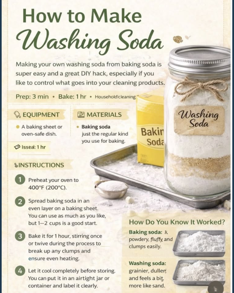 Making washing soda at home is one of the easiest DIY cleaning upgrades you can try. With just baking soda and heat, you transform a mild ingredient into a powerful cleaning agent.