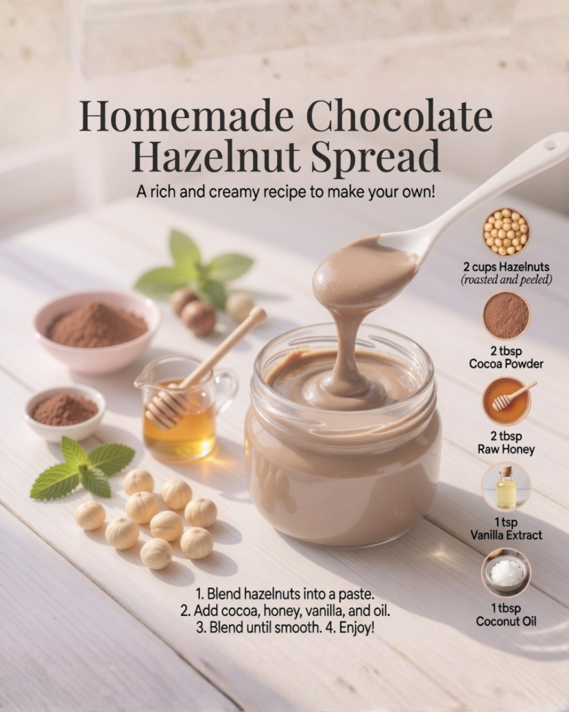 In this complete 2026 guide you’ll learn why homemade Nutella is healthier and tastier, the science behind the perfect creamy texture, the foolproof basic recipe, step-by-step instructions, 5 delicious variations, storage tips, common mistakes to avoid, and a practical daily use plan. Whether you spread it on toast, swirl it into oatmeal, or use it as a healthier dessert topping, this DIY version delivers the same addictive flavor with real-food ingredients you can trust.