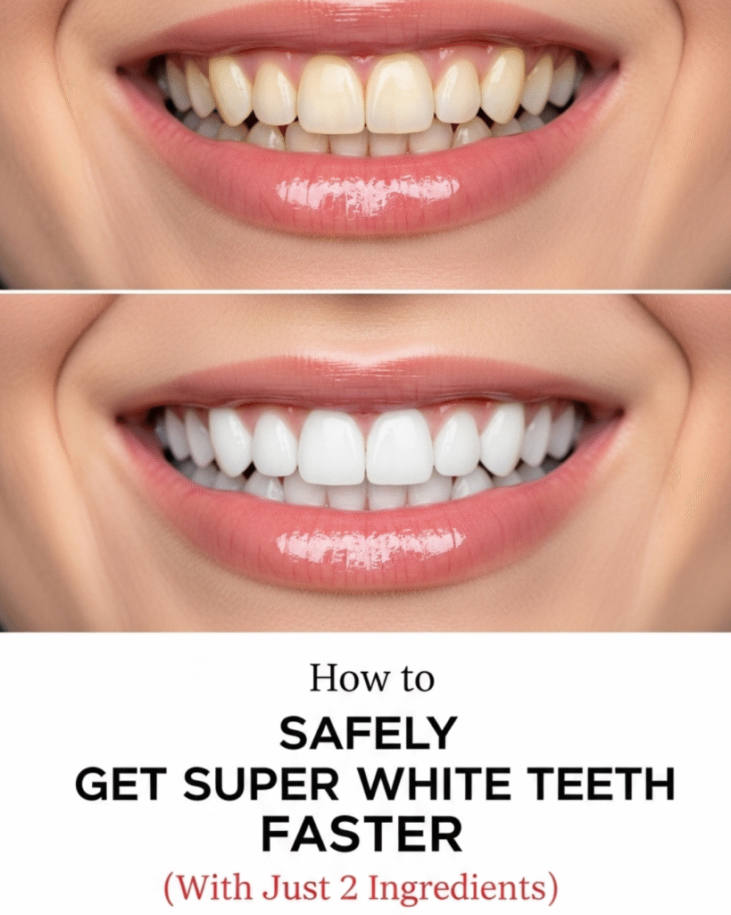 How to SAFELY GET SUPER WHITE TEETH FASTER (With Just 2 Ingredients) AT HOME
