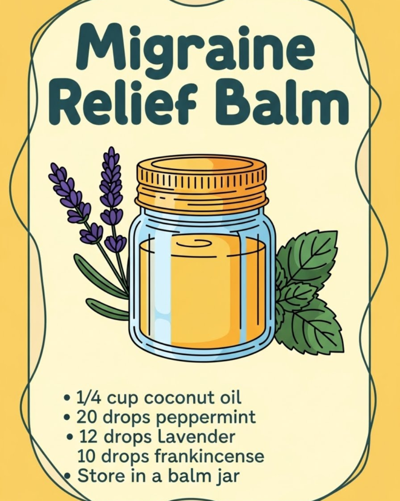 Meta Description: Discover a natural migraine relief balm with coconut oil, peppermint, lavender, and frankincense. Soothe headaches and tension safely at home.