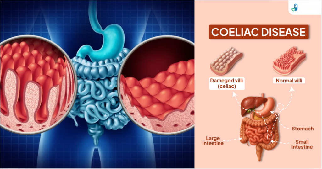 Celiac disease is a chronic autoimmune disorder in which ingestion of gluten triggers an immune attack on the small intestine’s lining.