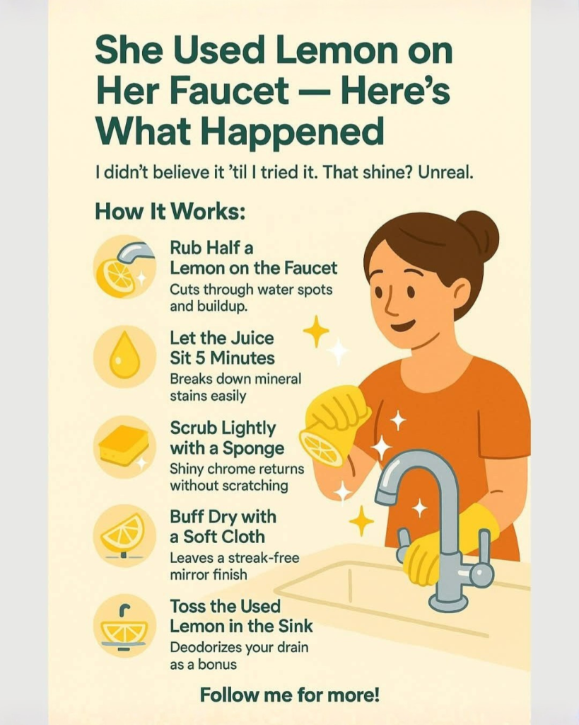 That simple lemon trick isn’t just a trend—it’s a smart, natural cleaning method. It removes limescale, cuts through residue, and restores shine without harsh chemicals. With just one ingredient, your faucet can go from dull to sparkling in minutes.