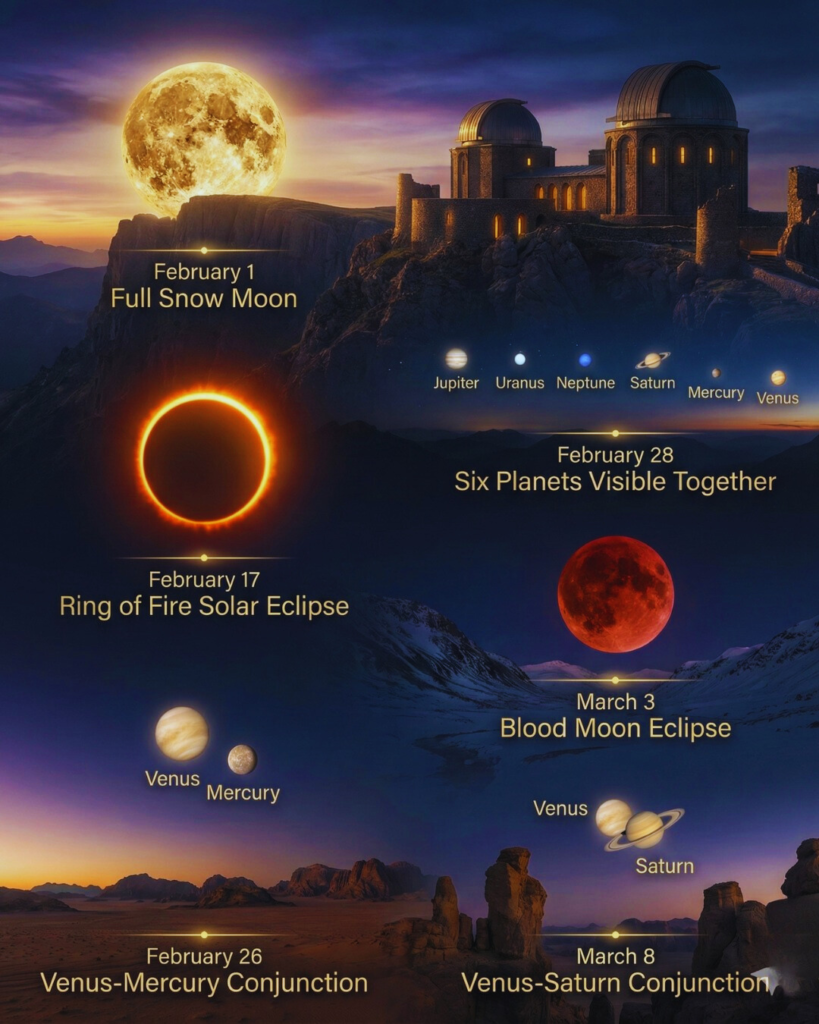 The night sky is delivering a packed schedule of wonders this February and March. Explore planetary alignments, full moons, and eclipses through a scientific lens.
