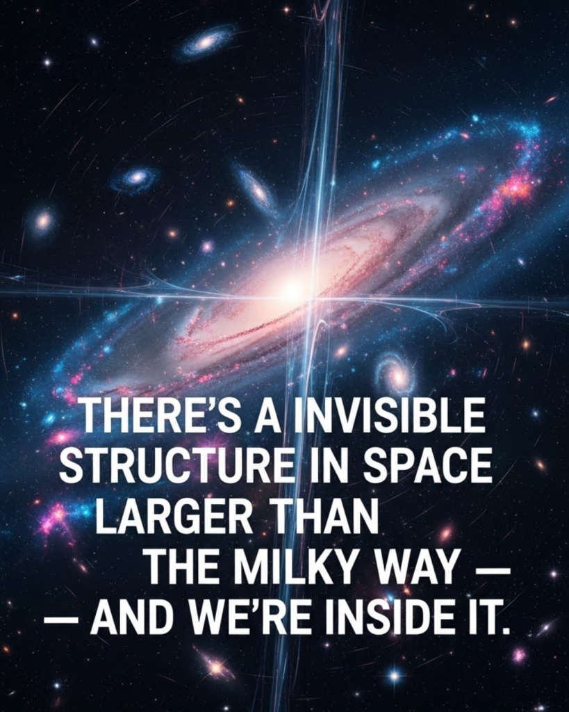 There’s a giant invisible structure in space larger than the Milky Way — and we’re inside it. This statement sounds like science fiction, yet it reflects one of the most profound discoveries in modern cosmology. Our galaxy is not drifting alone through empty space. Instead, it is embedded within an immense, largely unseen cosmic structure defined by gravity, motion, and dark matter. This revelation has fundamentally changed how astronomers understand the large-scale architecture of the universe and our place within it.