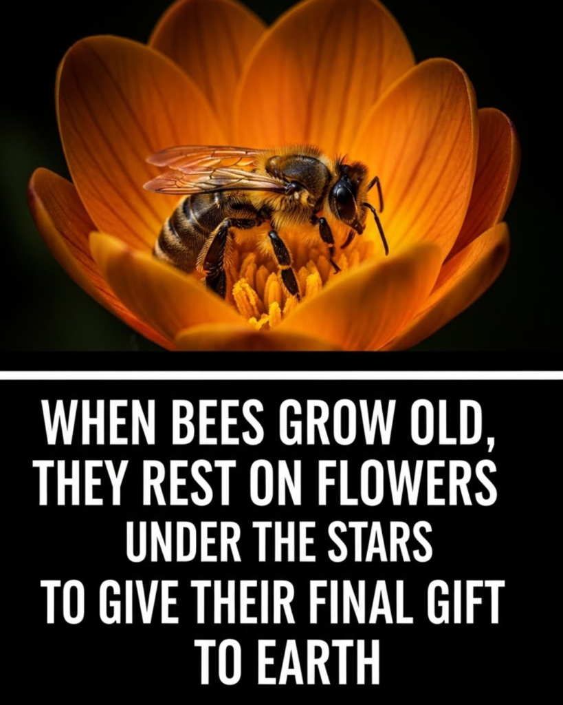 The idea that when bees grow old, they rest on flowers under the stars to give their final gift to Earth is not scientifically literal—but it is emotionally grounded in real biological truths. Aging bees do experience exhaustion, disorientation, and increased time spent resting on flowers. They do continue to pollinate until their physical limits are reached. And even in death, they return nutrients to the environment.