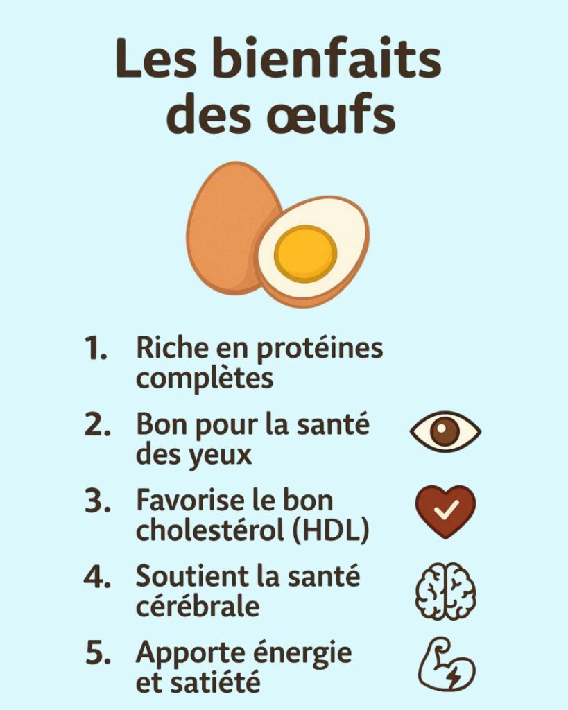 L’œuf mérite pleinement sa place parmi les aliments les plus nutritifs et accessibles de notre alimentation. Sa richesse en protéines de haute qualité, en vitamines essentielles, en minéraux biodisponibles et en composés bioactifs comme la choline et les caroténoïdes en fait un allié précieux pour votre santé globale. Les craintes liées au cholestérol alimentaire, désormais dépassées par les données scientifiques actuelles, ne devraient plus vous dissuader d’intégrer régulièrement cet aliment dans vos repas.